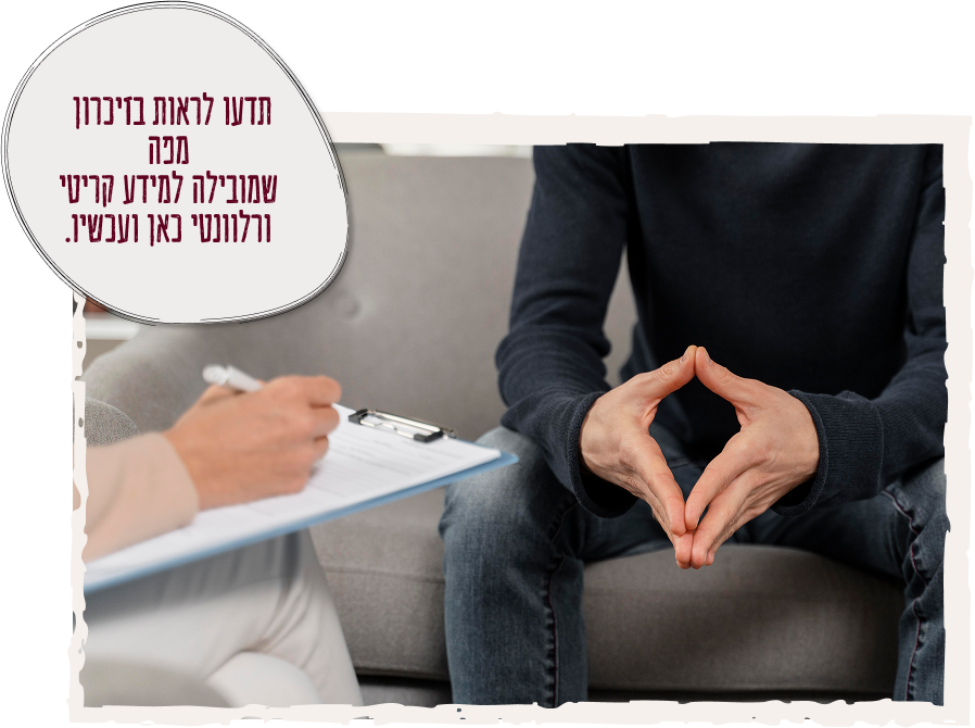 המפגשים יהפכו להזדמנויות שבהן מטופלים חווים הבנה חדשה של עצמם ומתאפשרת בחירה אחרת.