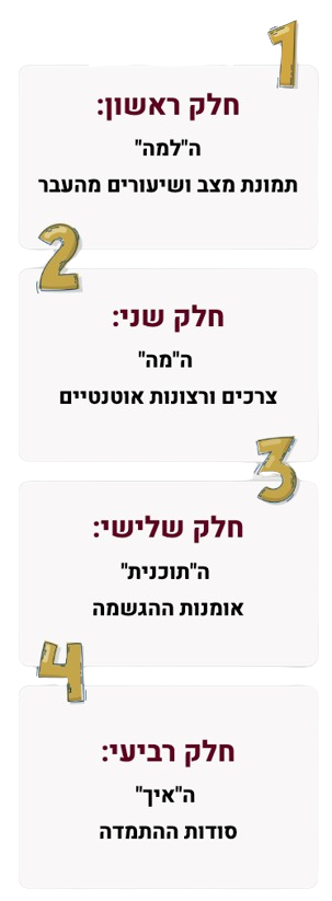 4 | יצירת תמונה עתידית מיטבית מכוונת ומניעה לפעולה. |